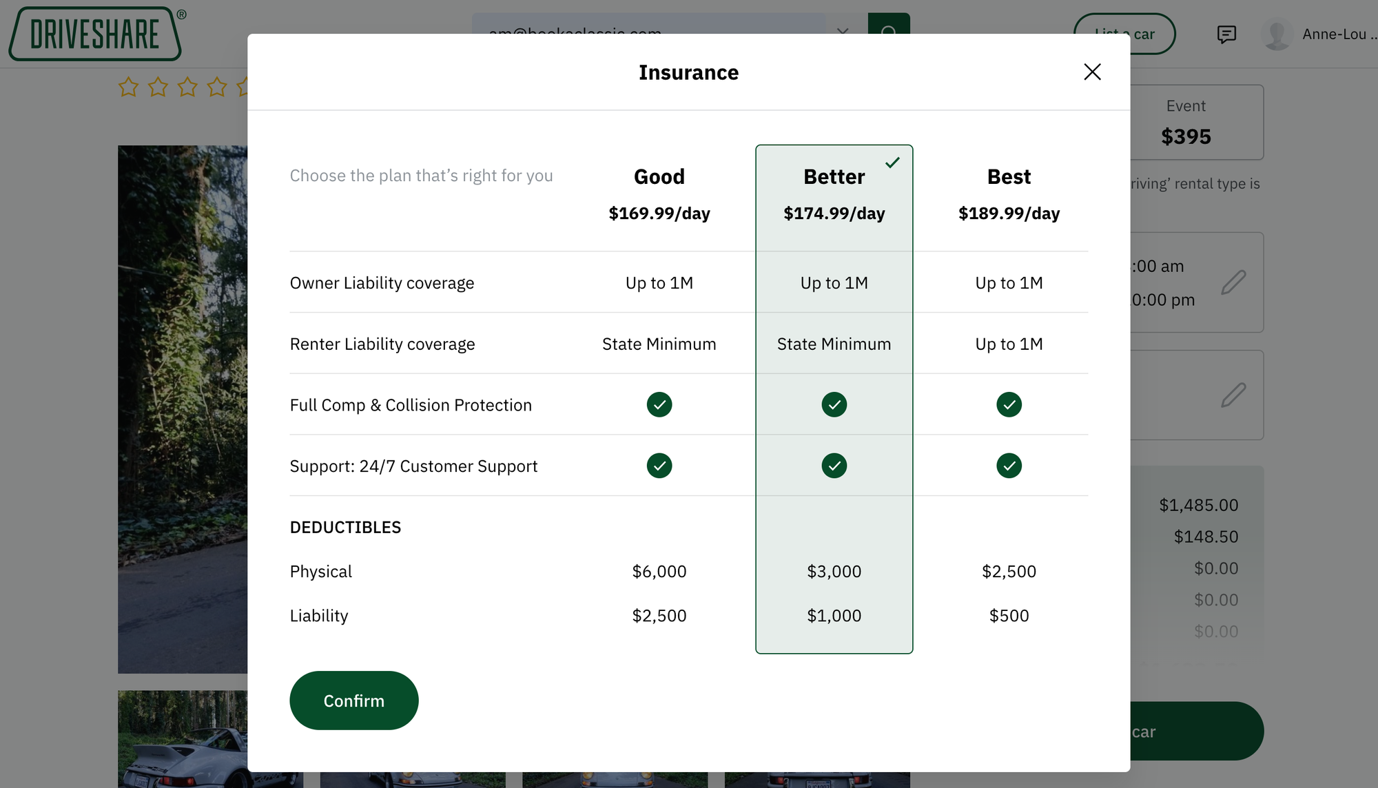 Anne-Lou: We're excited to introduce three coverage options, offering increased flexibility for both owners and renters. With coverage provided for every driving rental, and plans to extend this to other rental types soon, users can expect comprehensive protection.