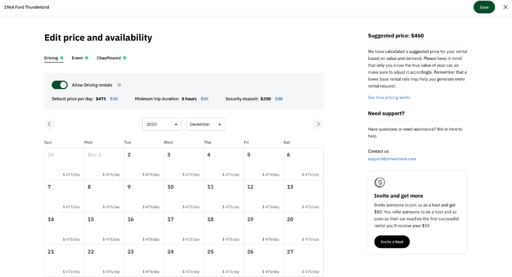 And don't forget, planning ahead to 2025, if you want to be part of the new DRIVESHARE Experiences platform it's time to start exploring. It takes just a few minutes to create an Experience and you can increase your earning potential while doing what you already love: connecting people with the joy of classic cars.